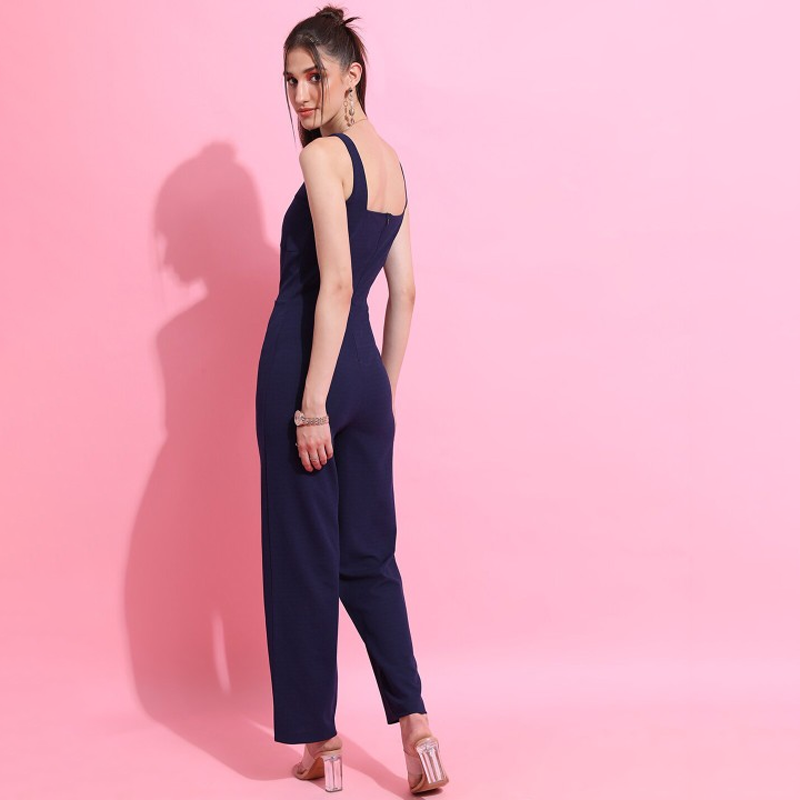 Navy Blue Square Neck Basic Jumpsuit