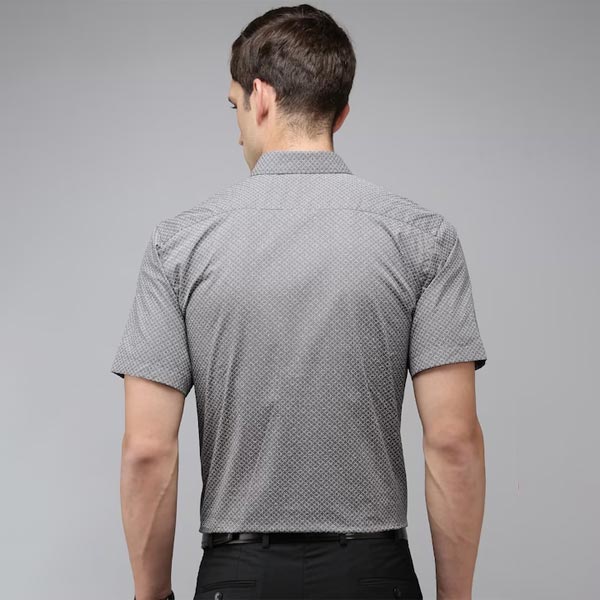 Formal & Casual shirtGrey geometric printed opaque Formal shirt, has a spread collar, button placket, 1 patch pocket, short regular sleeves, straight hem